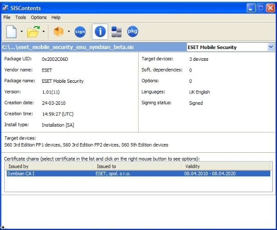 SISContents - Unpacking, editing and signing of Symbian SIS packages